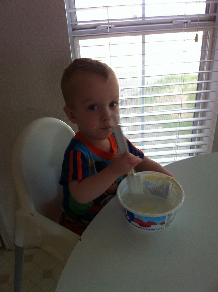 Colt is “helping” me make the banana pudding for our dinner later!!