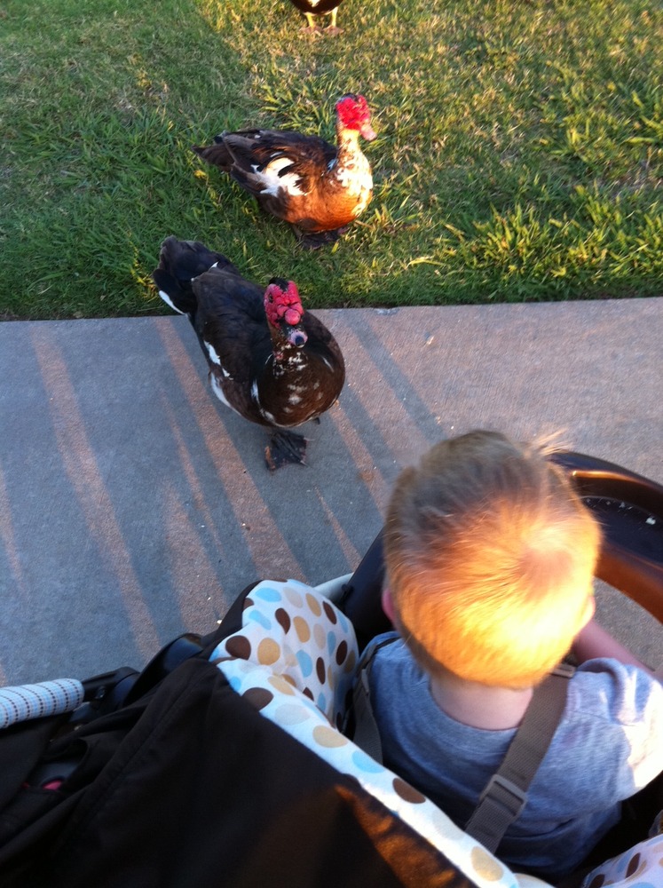 Colt & I went to walk with Jeff tonight. He decided to share his snacks!! In a VERY short time we were surrounded!!